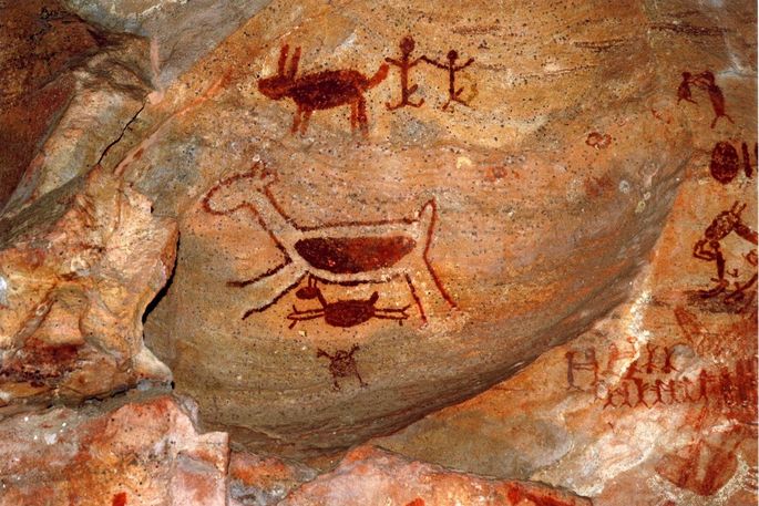 A pintura rupestre acima, que é um patrimônio cultural brasileiro, expressa: